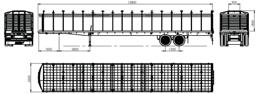 - Posee una plataforma recta de 15,8 m de longitud y 2,6 m de ancho apta para cargar, con ingreso por la parte trasera a través de una puerta guillotina de izaje manual con sistema de cuerda y roldanas.